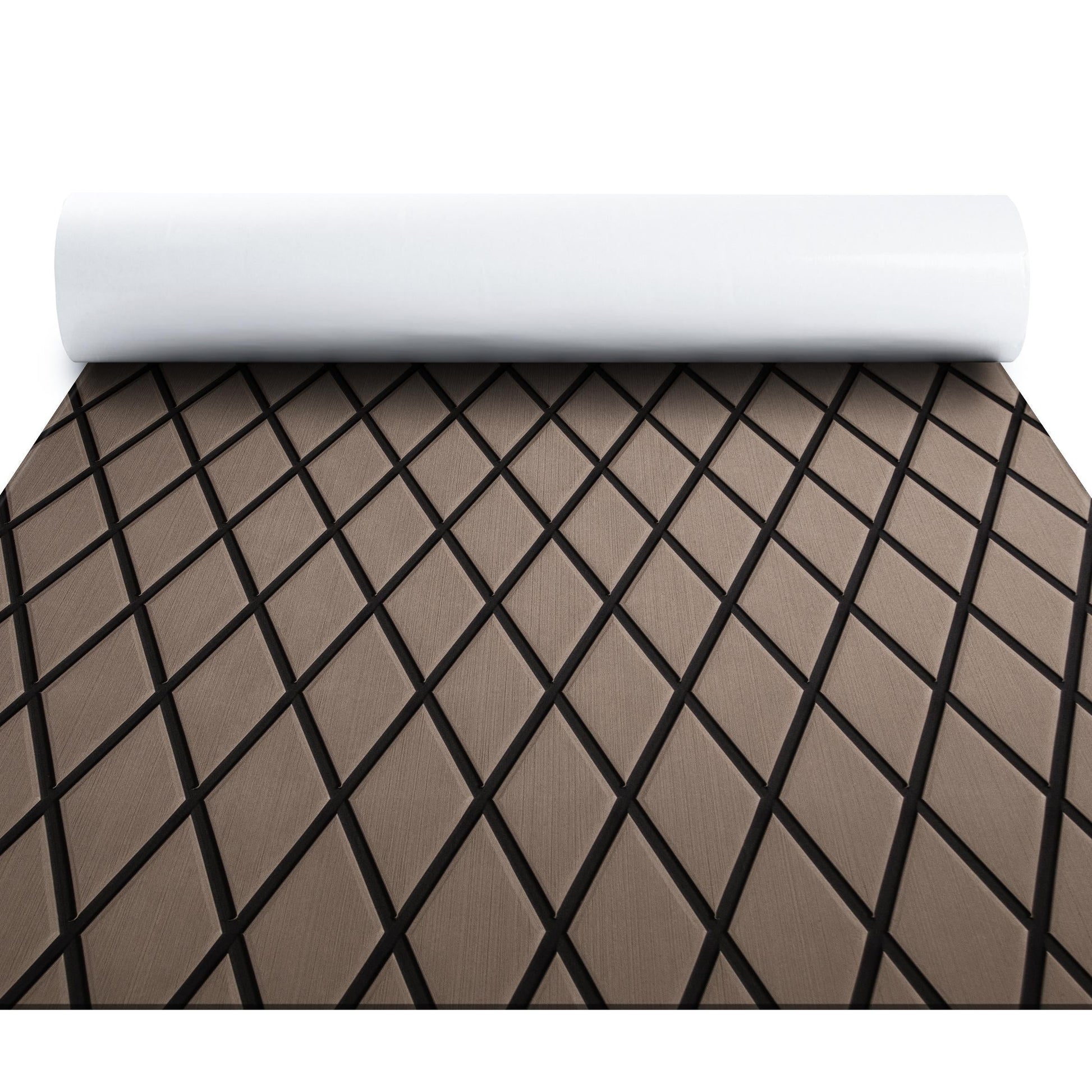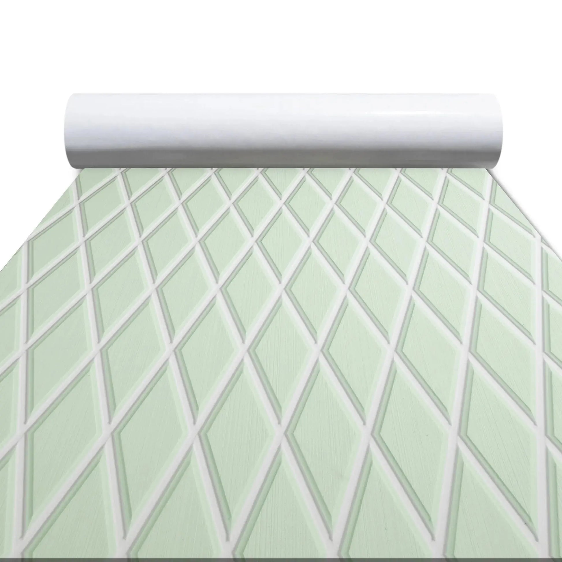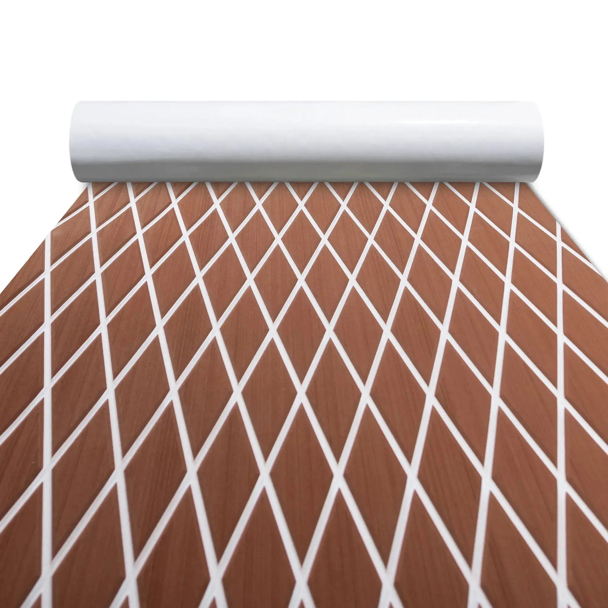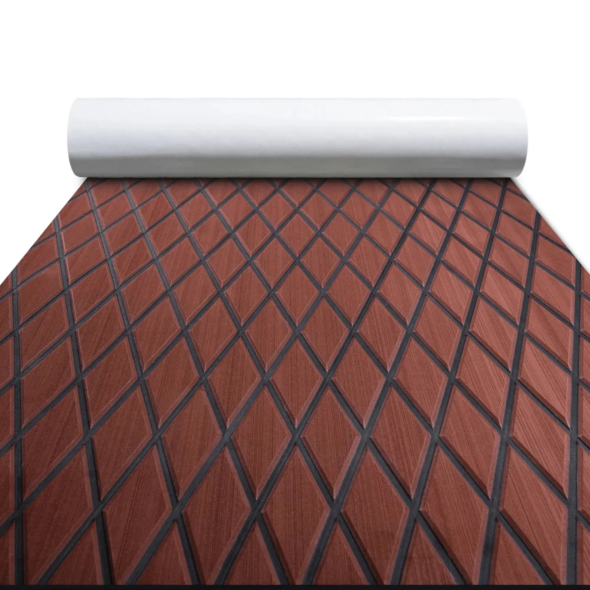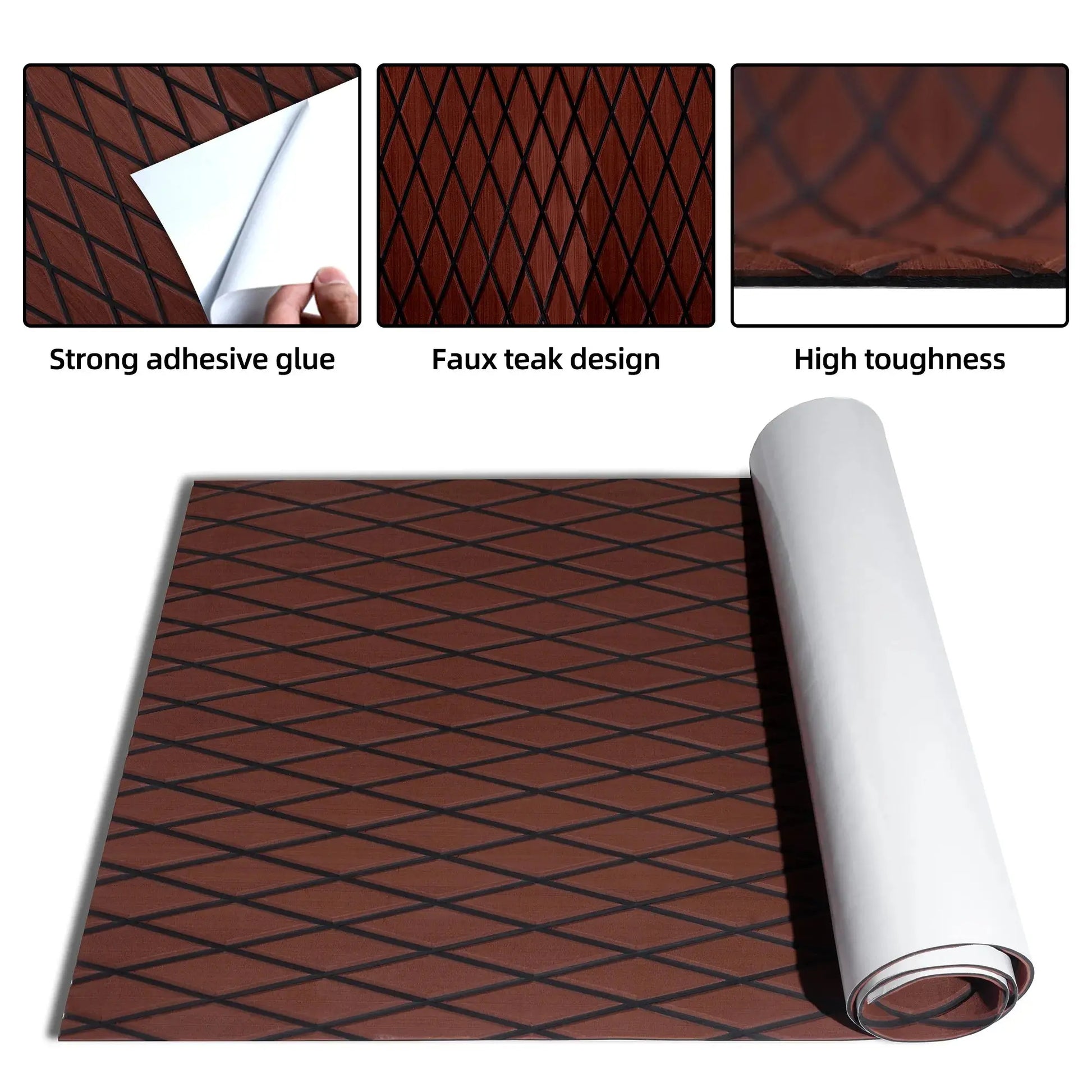 - High Quality EVA Foam - BoatFloorings Boat flooring uses high-quality EVA(Ethylene-vinyl Acetate) material. High durable eva foam boat decking; Not easy deformation; Not easy to tear or damage; Not easy to fade; High density. Maintain a constant temperature, not easy to absorb heat; Odorless, non-toxic, Non-Slip marine mat; Self-Adhesive boat carpet. Hardness: 55 (±1P)