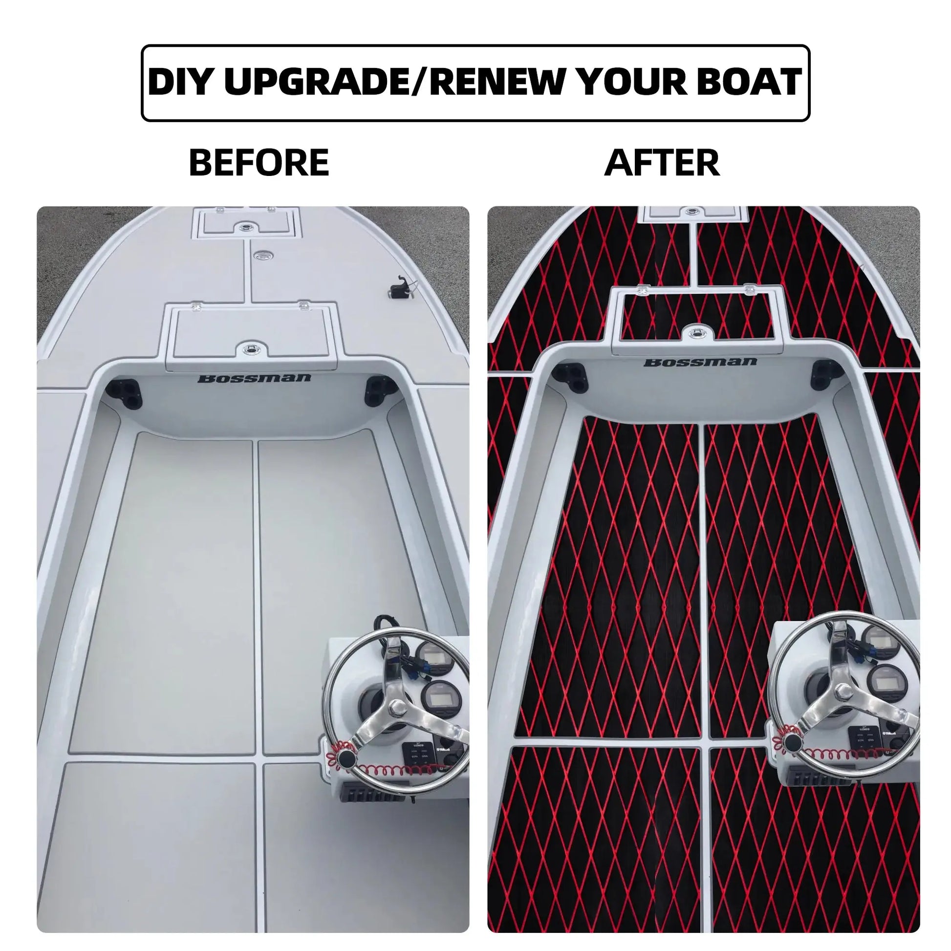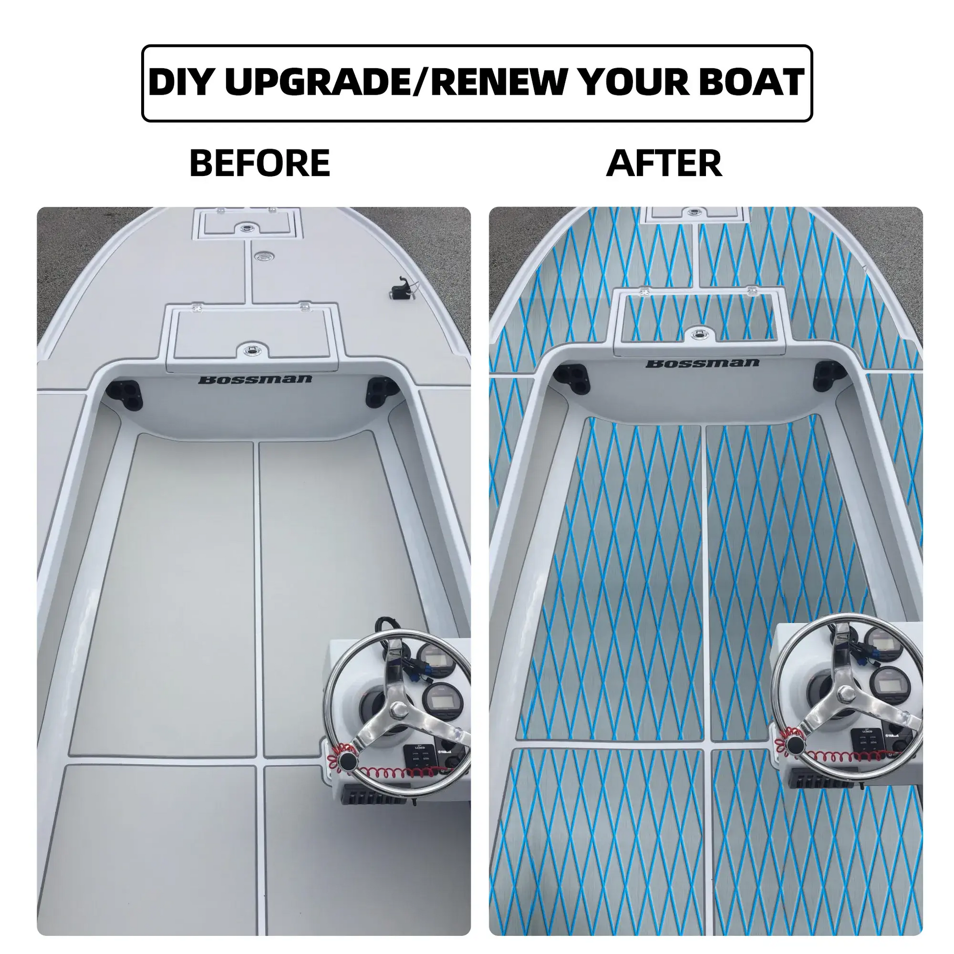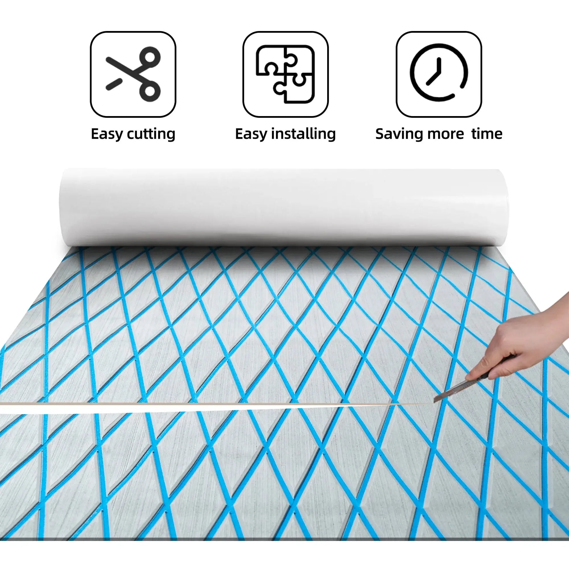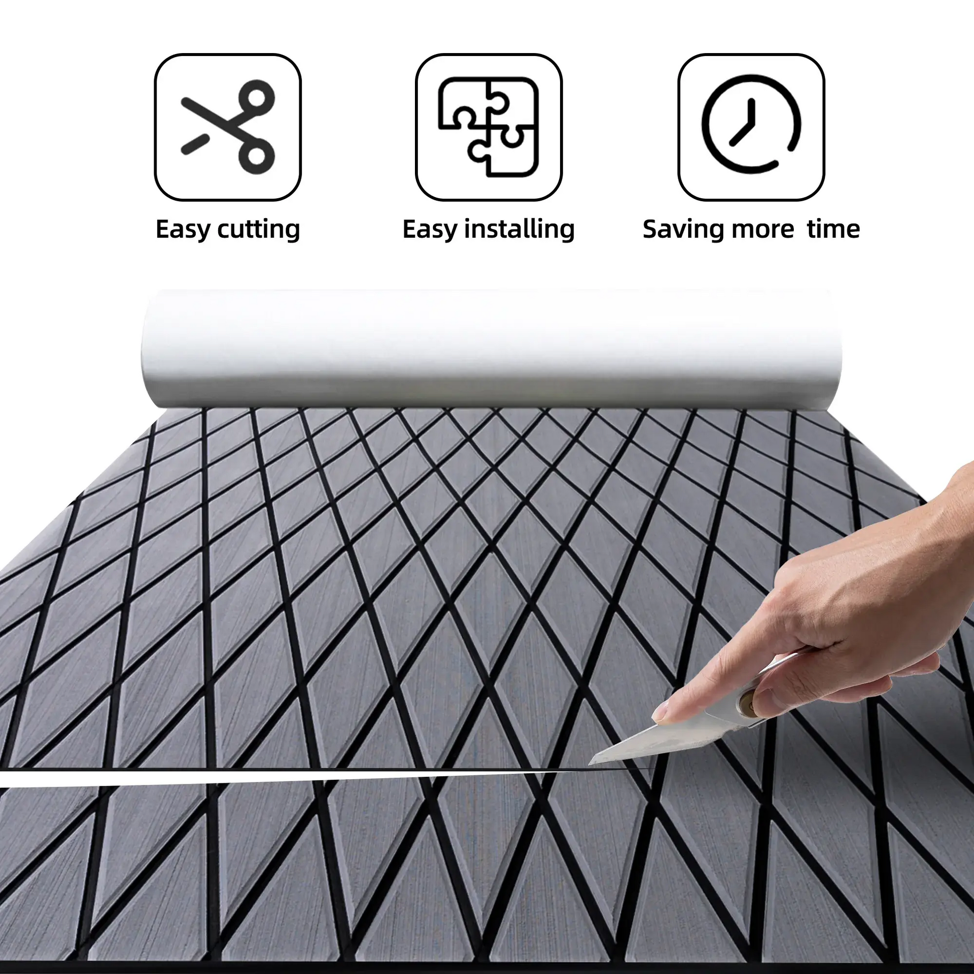 - Easy Installation Boat Flooring- You can use a cutting tool to cut this eva foam boat flooring sheet to any size for installation, with strong glue on the back (please keep the installation site clean). Very easy to cut and hard to fall off after cutting, and it is flat and beautiful. You can enjoy DIY with this marine flooring materials