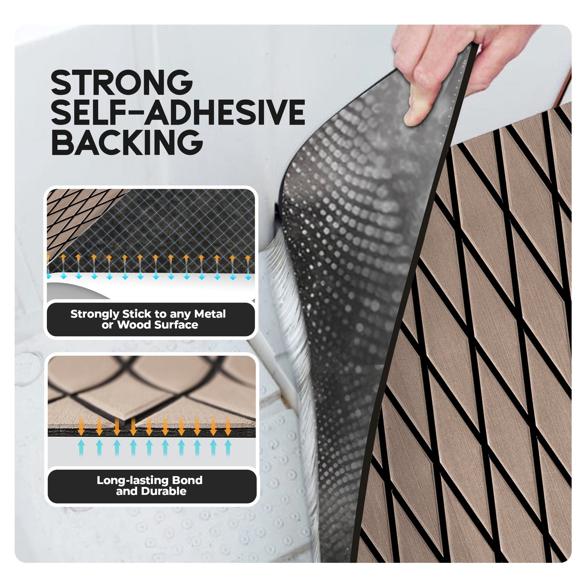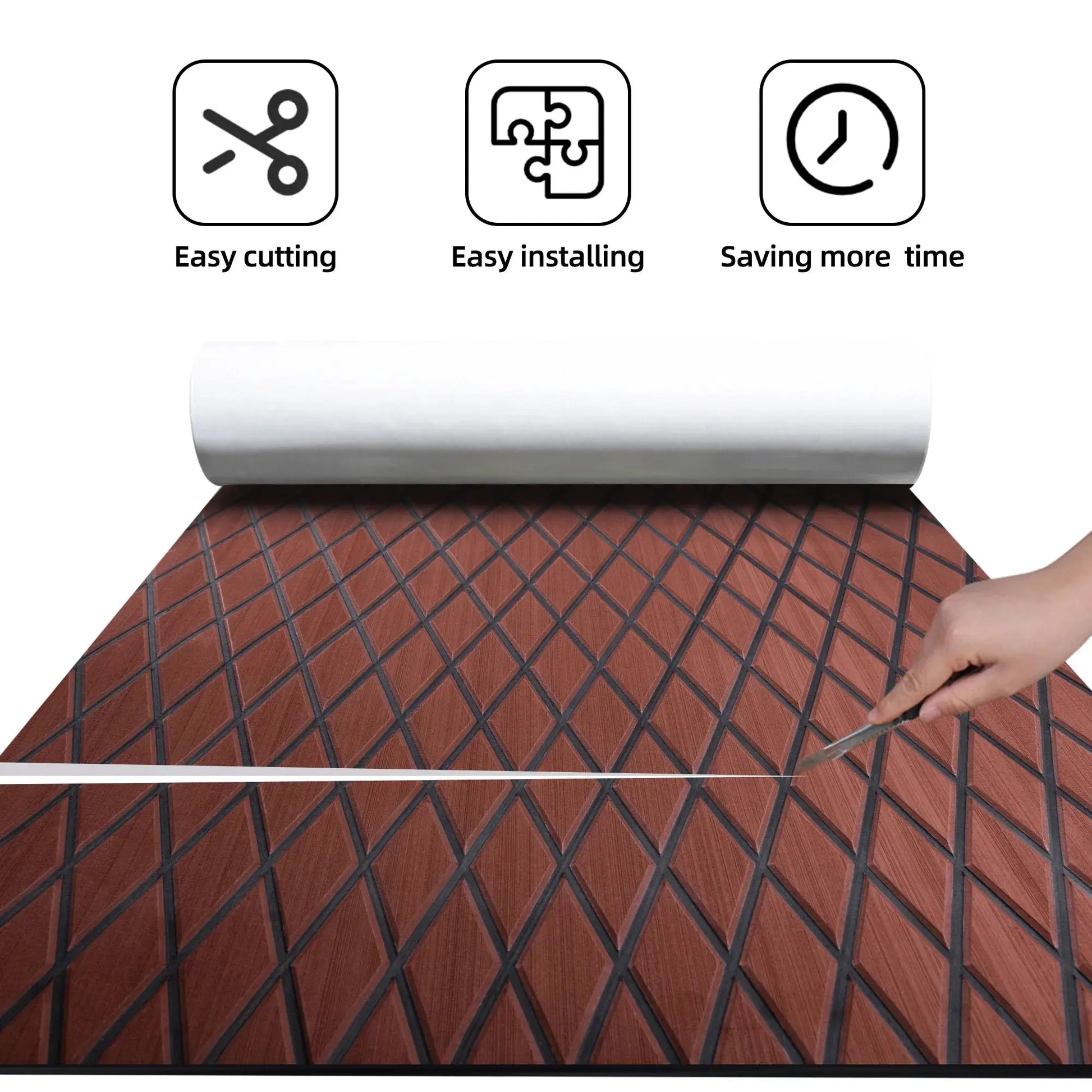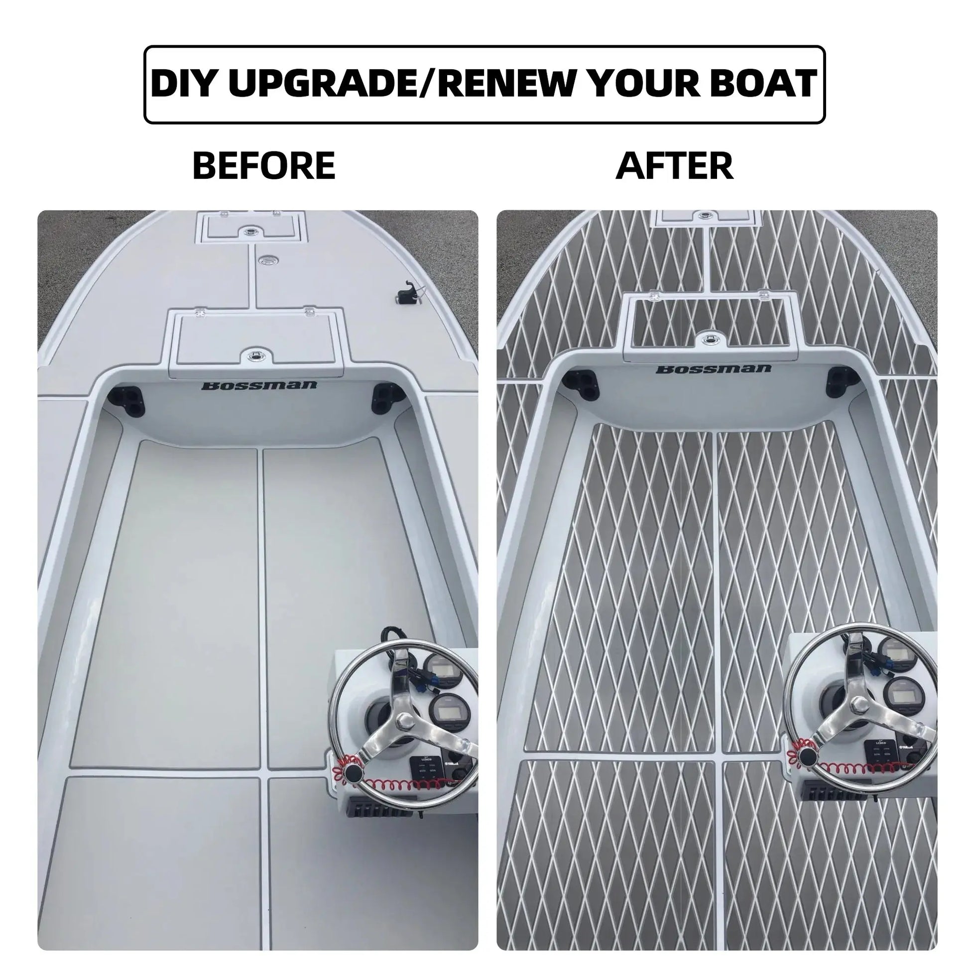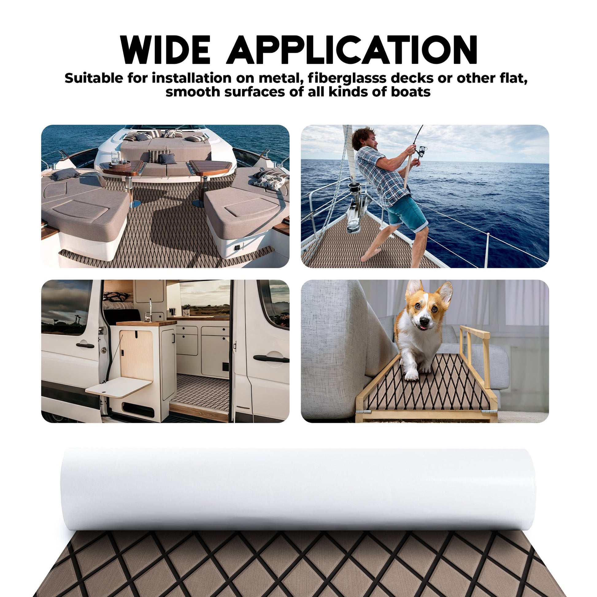 - Easy Installation Boat Flooring- You can use a cutting tool to cut this eva foam boat flooring sheet to any size for installation, with strong glue on the back (please keep the installation site clean). Very easy to cut and hard to fall off after cutting, and it is flat and beautiful. You can enjoy DIY with this marine flooring materials