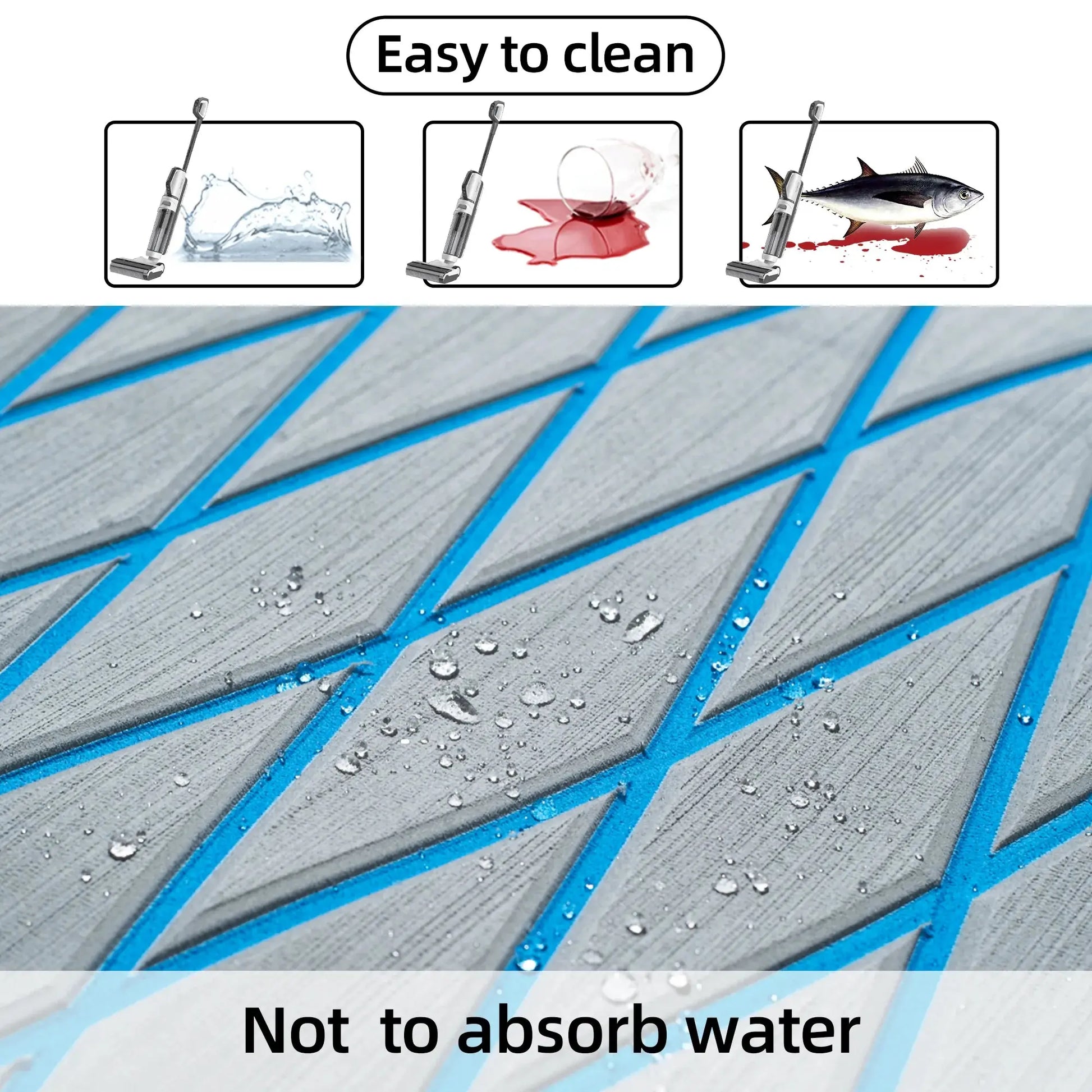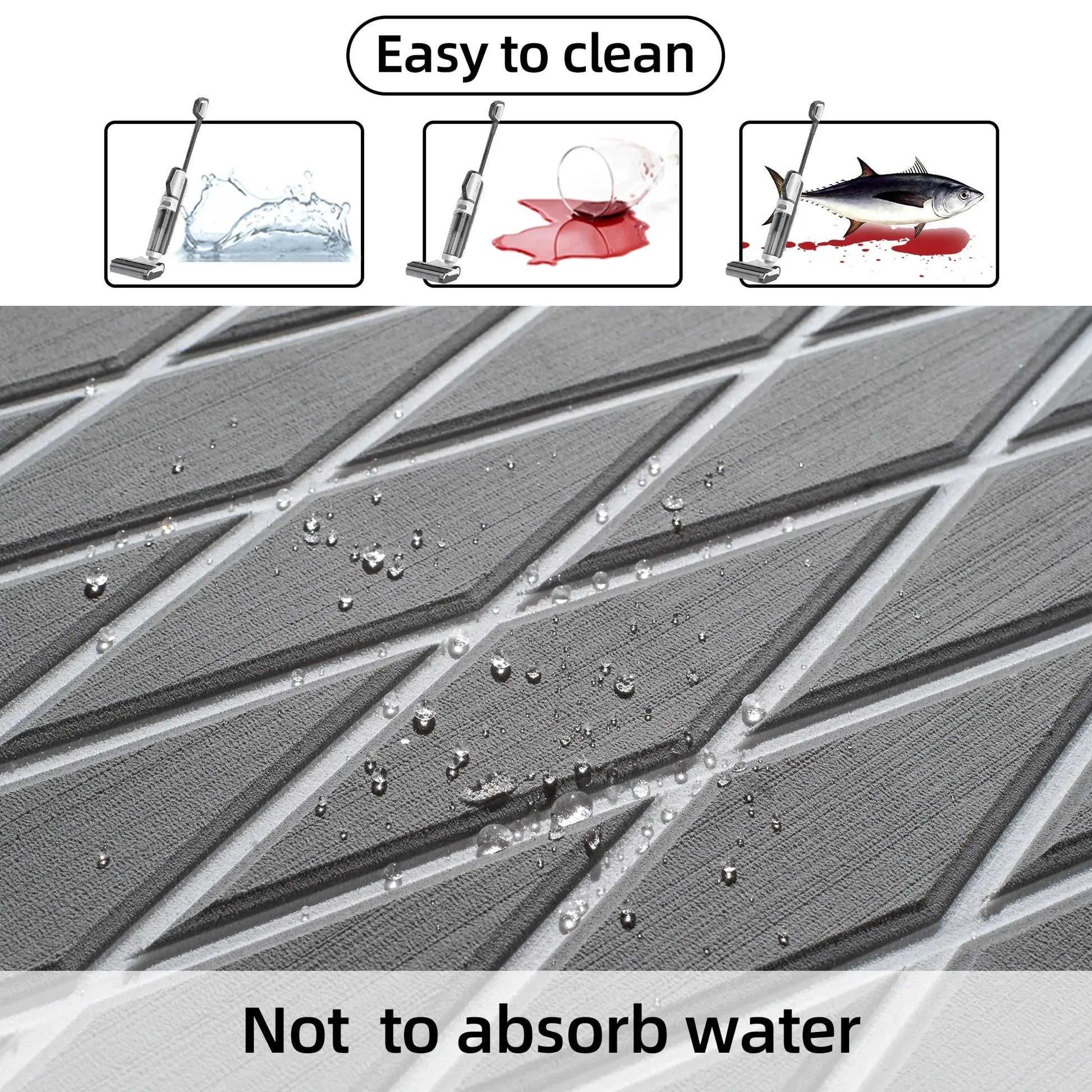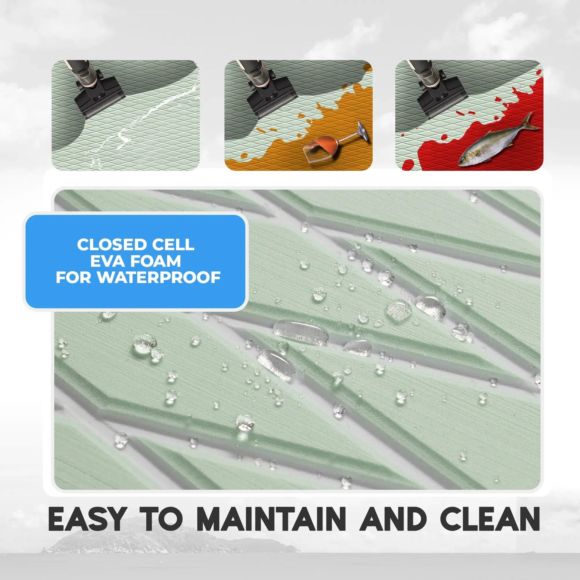 - Perfect Performance - Our EVA foam boat flooring can be easily washed with vacuum cleaner, or be pressure washed. Including: water, red wine, fish blood, sundries and anything else. Good resistance to salt water and not easy to absorb heat. Fully combining ergonomic principles to design will definitely give you an excellent experience