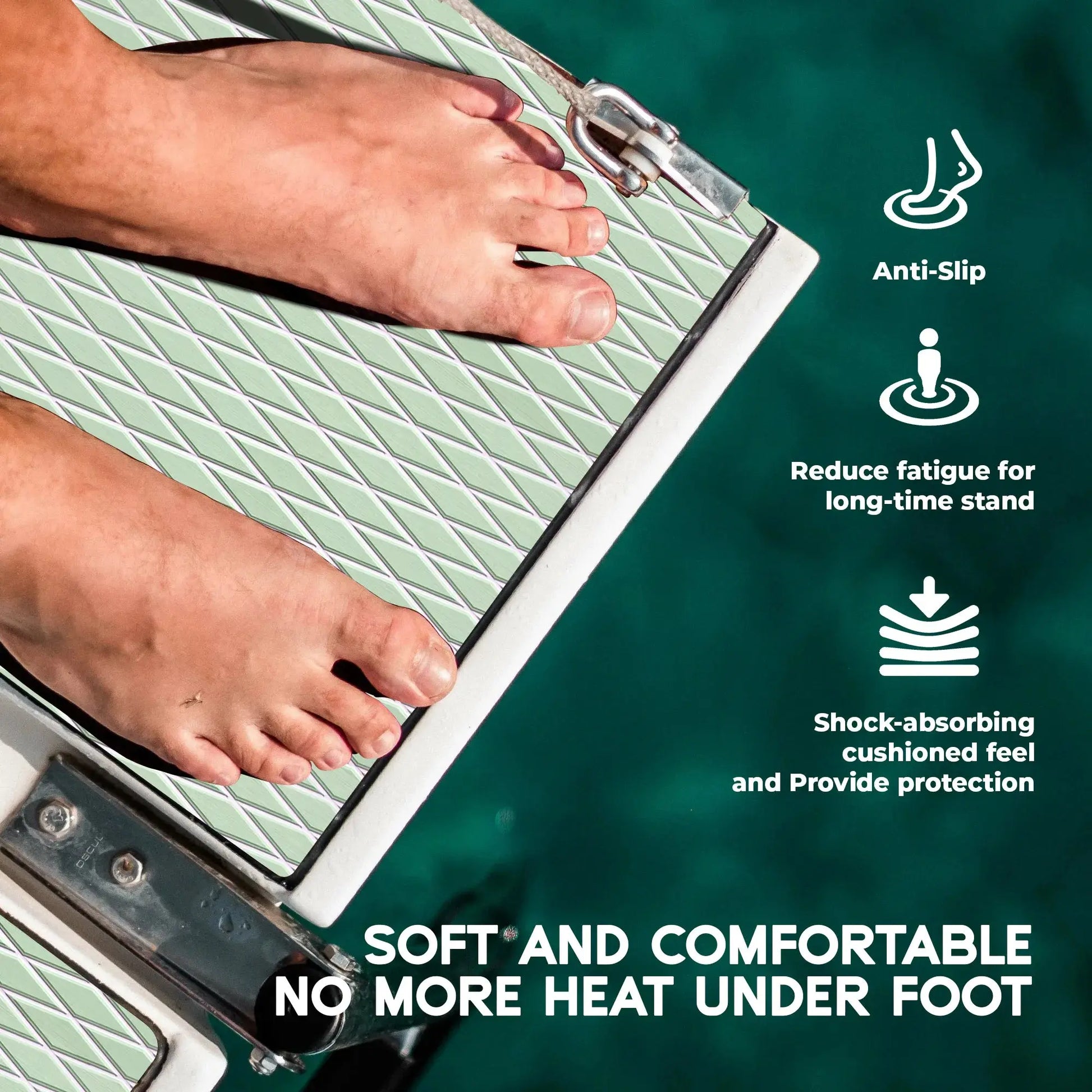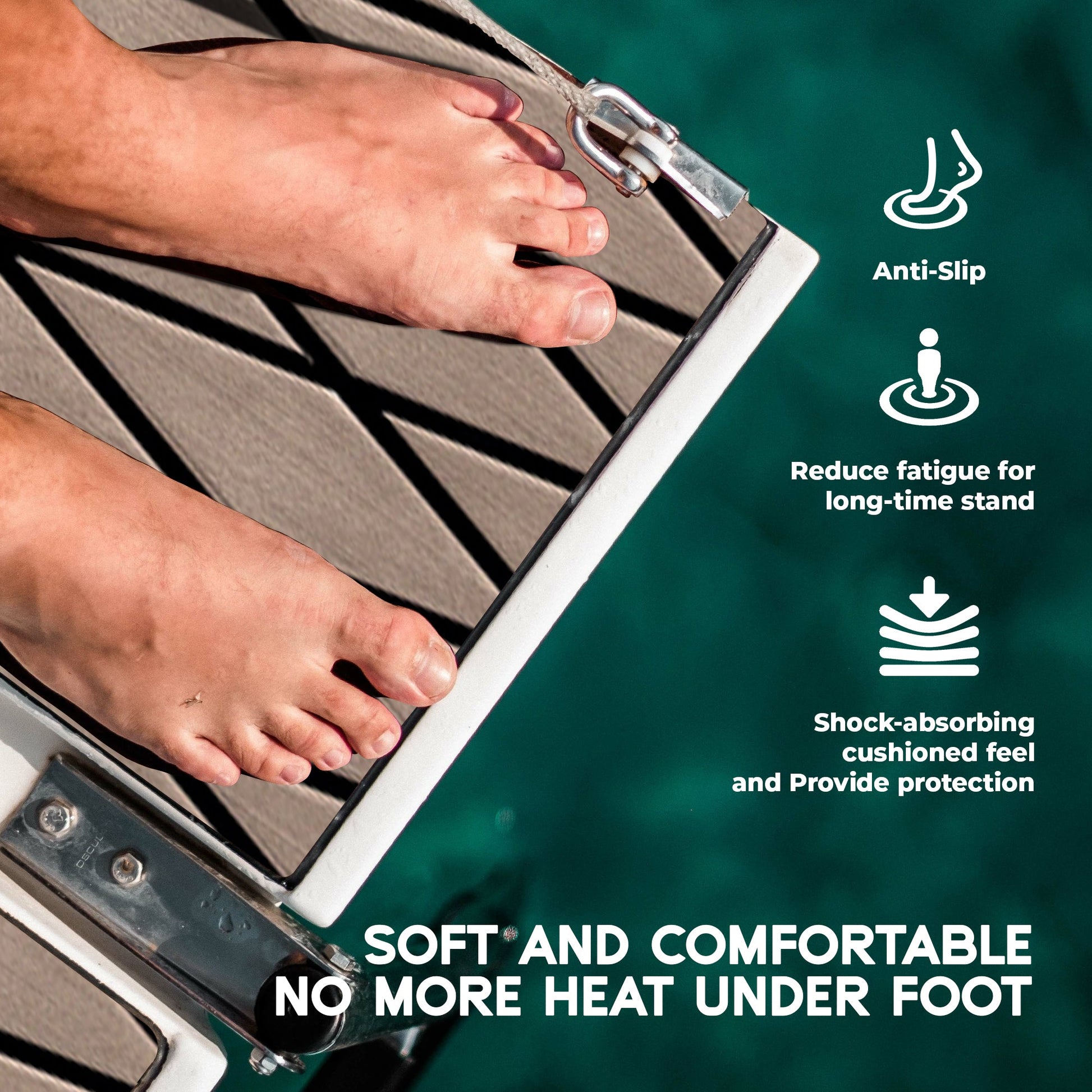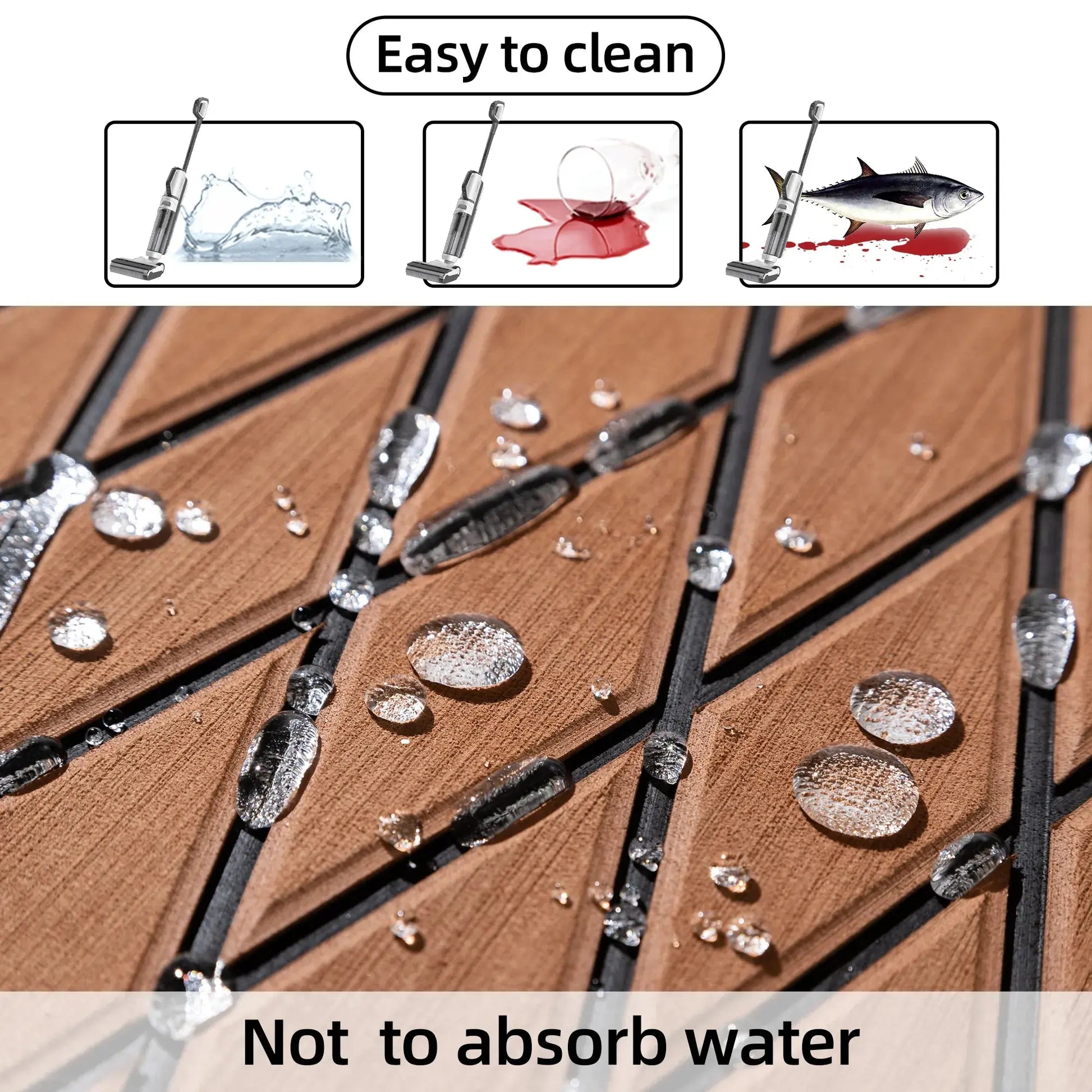 - Perfect Performance - Our EVA foam boat flooring can be easily washed with vacuum cleaner, or be pressure washed. Including: water, red wine, fish blood, sundries and anything else. Good resistance to salt water and not easy to absorb heat. Fully combining ergonomic principles to design will definitely give you an excellent experience